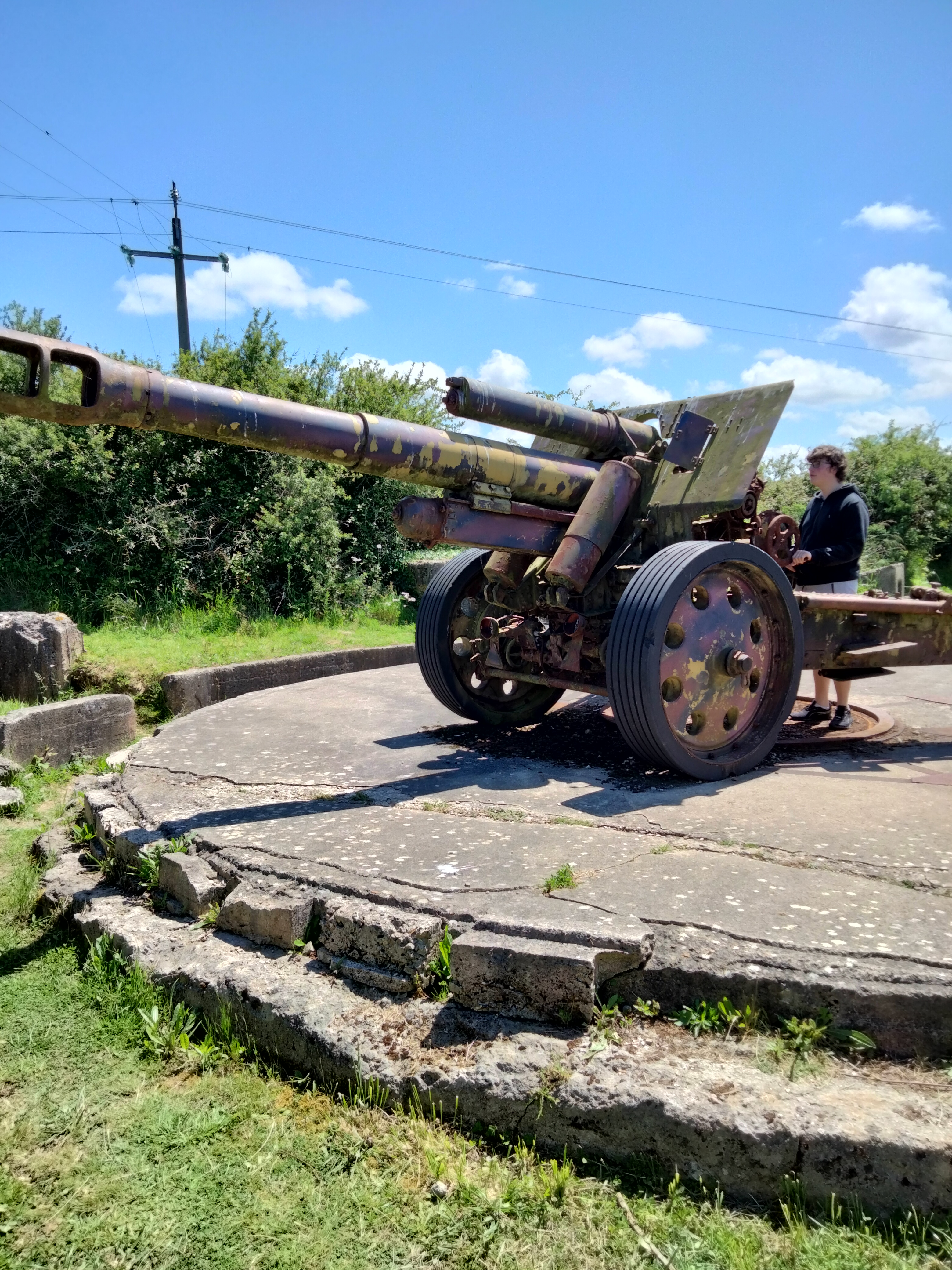 Bonsoir, la visite de cette batterie est étonnante... Les tranchées sont toujours présentes les canons aussi mais je regrette la qualité d'entretien du site quand on arrive sur place il y a toutes ces canons qui tous rouillés limites laissés à l'abandon, l'herbe est haute rien n'est réellement entretenu. Je trouve dommageable de voir ça car c'est des pièces automatiques qui vont fini tôt ou tard à la ferraille alors que si ils était posés sur une dalle de béton il serait également plus simple d'entretenir le tour. La barge en bois à l'entrée si rien n'est fait dans moins de 5ans elle finira en miettes. MESSAGE POUR LES PROPRIÉTAIRES DU SITE vos canons et votre barge à l'entrée de la batterie sont VOTRE Vitrine prenez en soins et vous aurez plus de visiteurs. Des propriétaires très gentils que j'encourage à faire mieux pour que ce magnifique site encore en était devienne un lieu de passage obligé pour tous les amoureux de la bataille de Normandie et de la 2eme guerre mondiale de manière générale. Si vous le souhaitez je me propose pour vous aider. Il vous suffit de me le faire savoir en réponse de ce message et je vous contacterais par téléphone.