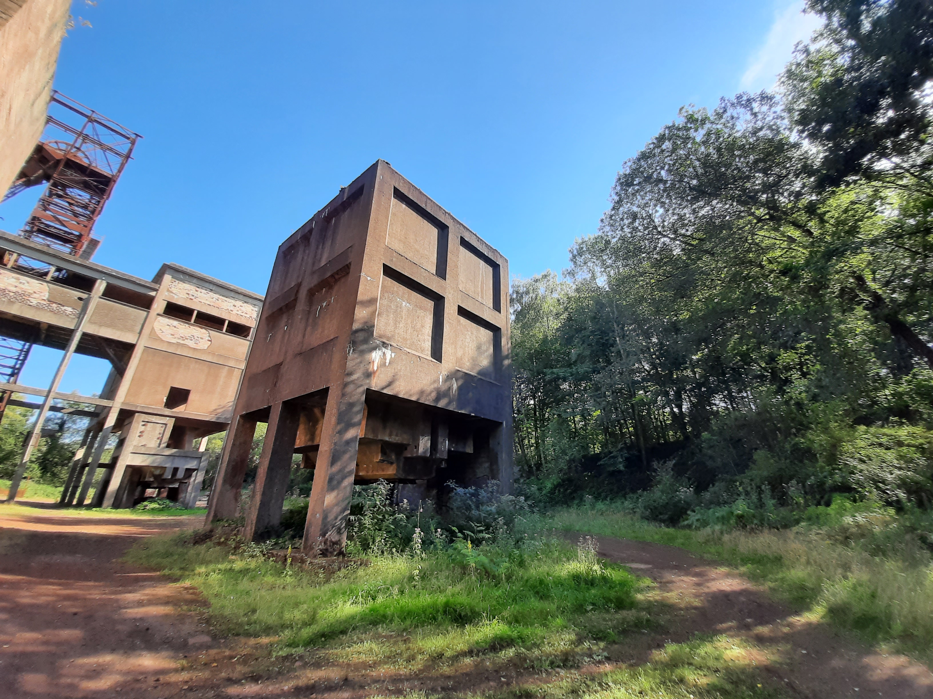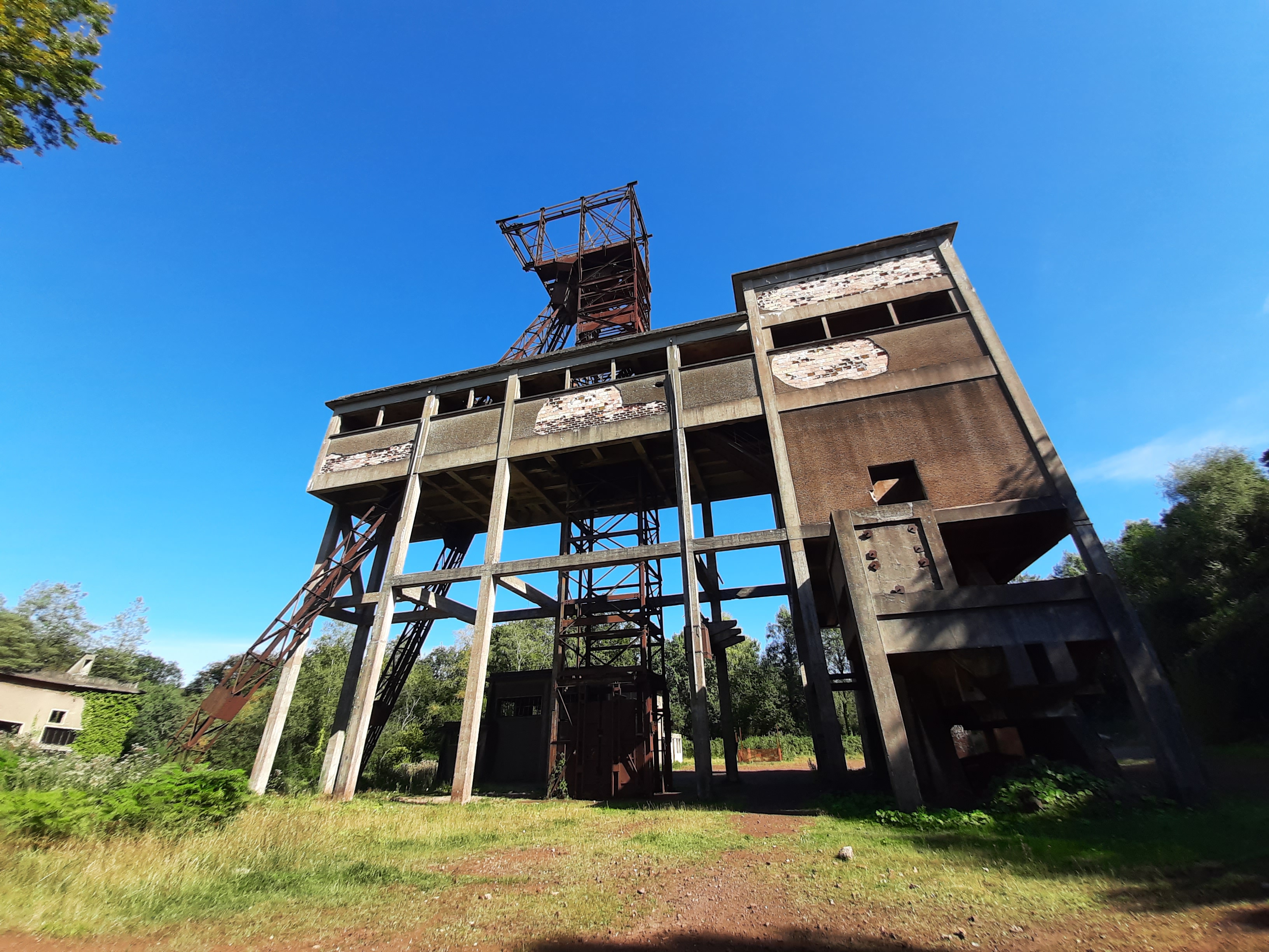 Deuxième étape de mon circuit-découverte en voiture des forges et des mines, le carreau de la mine de Saint-Clair-de-Halouze regroupe des installations minières : chevalement, silos, vestiaires des mineurs etc..., utilisées de 1953 à 1978. Le site est malheureusement laissé à l'abandon. Pour s'y rendre, garer sa voiture devant la barrière, emprunter le chemin et marcher dans la forêt environ 12 minutes. La promenade est très agréable surtout par beau temps.