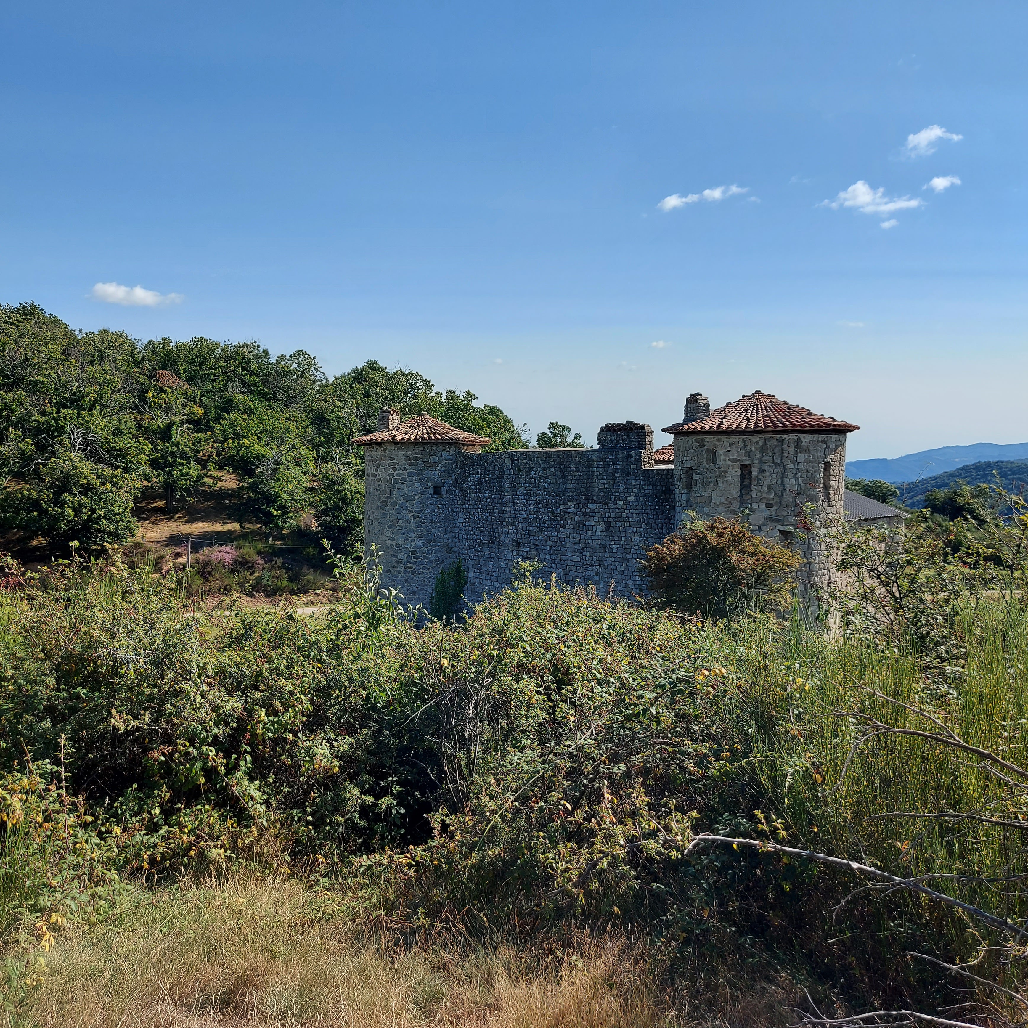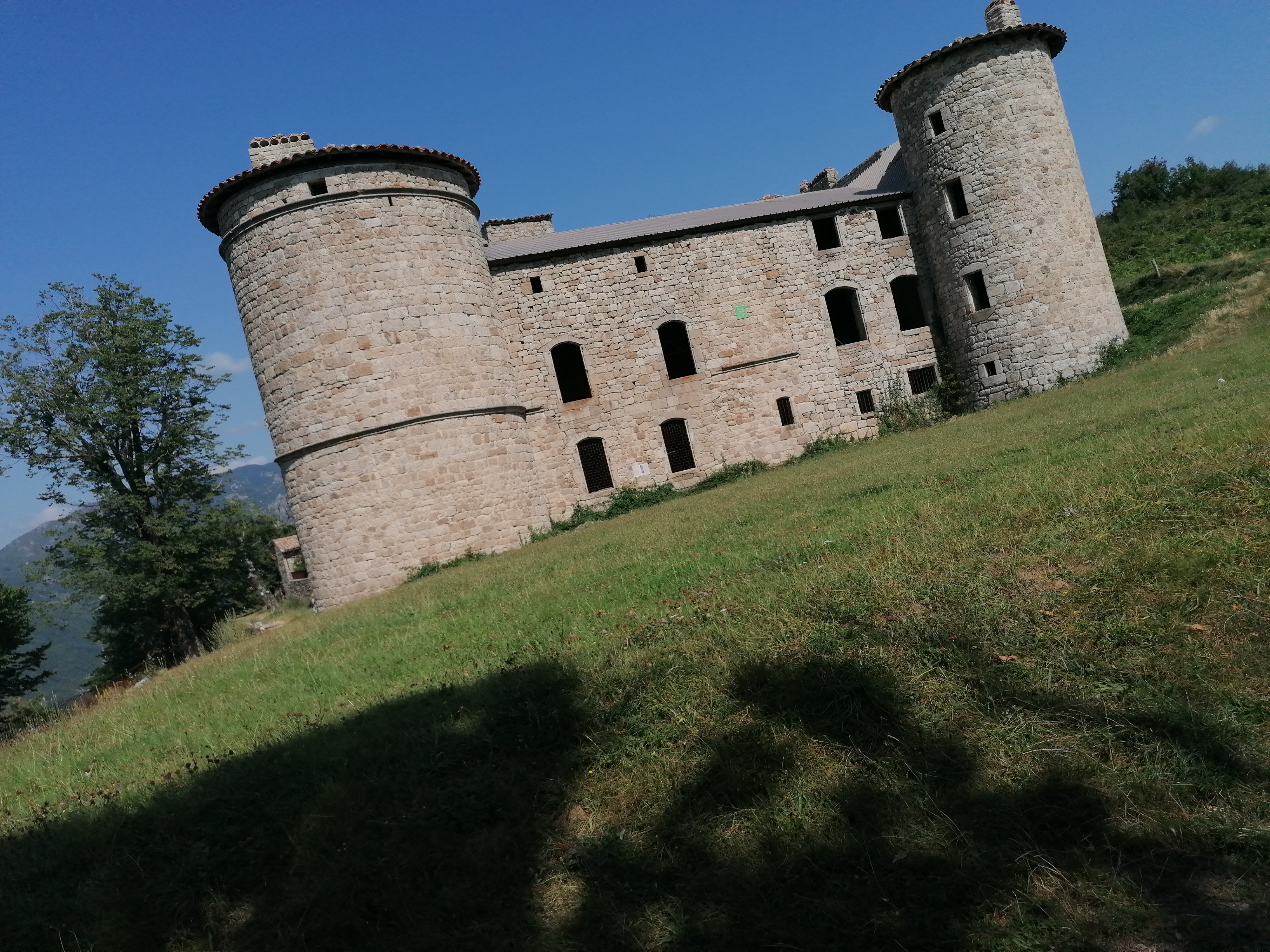 Un moment rare de perfection ! Les paysages autour du château sont magnifiques de douceur et de paix. Fin juin, en début de soirée par temps de canicule, c'est vraiment le lieu idéal pour une balade tranquille autour du château. Un circuit d'un km est aménagé. Il y a tout ce qu'il faut : tables abritées, toilettes, panneaux pédagogiques, lapins et poules en liberté, points de vue superbes sur les montagnes et le village d'Antraigues sur Volane... Le château est sécurisé (toit provisoire en tôle et bardages) et ne peut pas se visiter mais il y a bien assez à voir de l'extérieur !