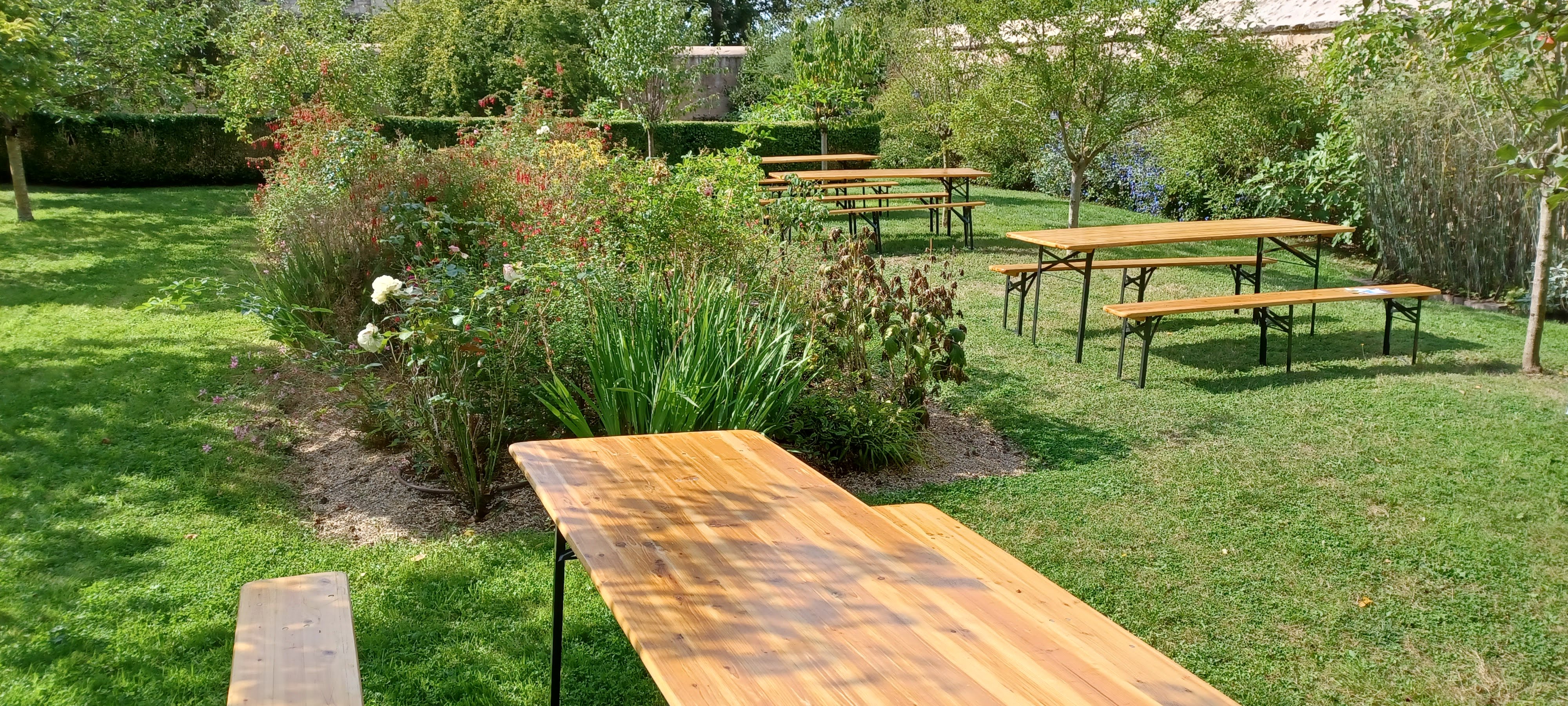 Les jardins embellissent chaque année. Lors de notre Re Re Re visite du lundi de Pentecôte, nous avons apprécié de prendre le thé à l'ombre naturelle d'un arbre, au calme !