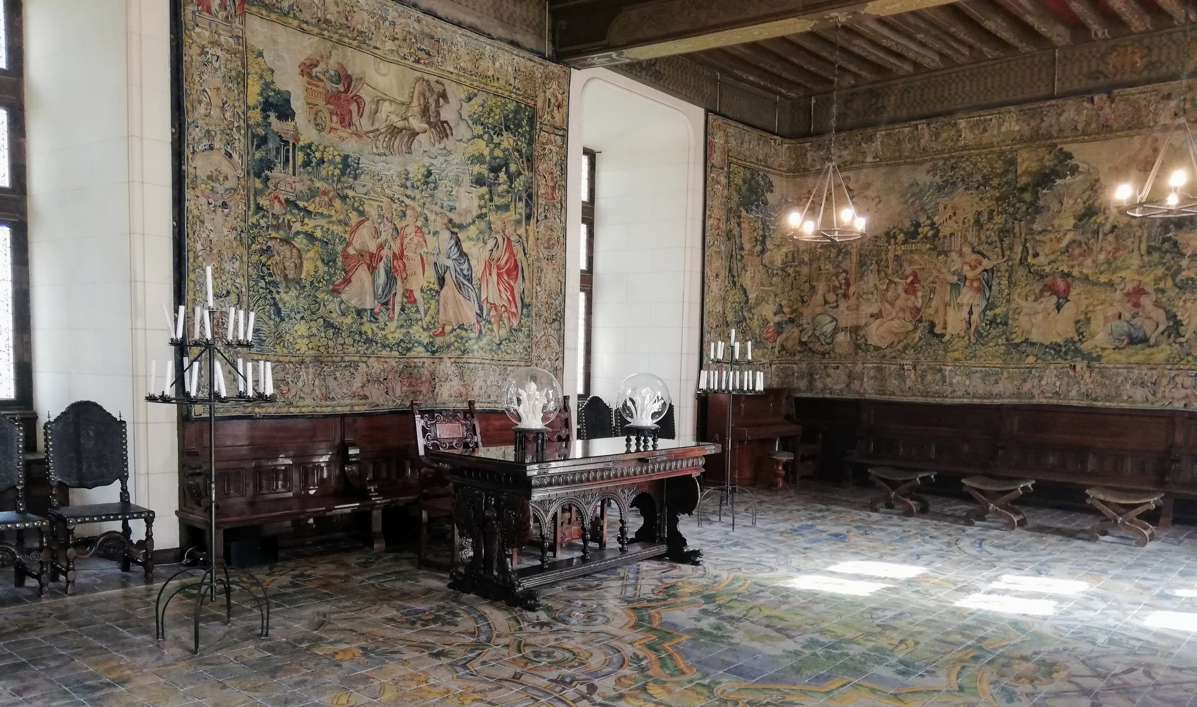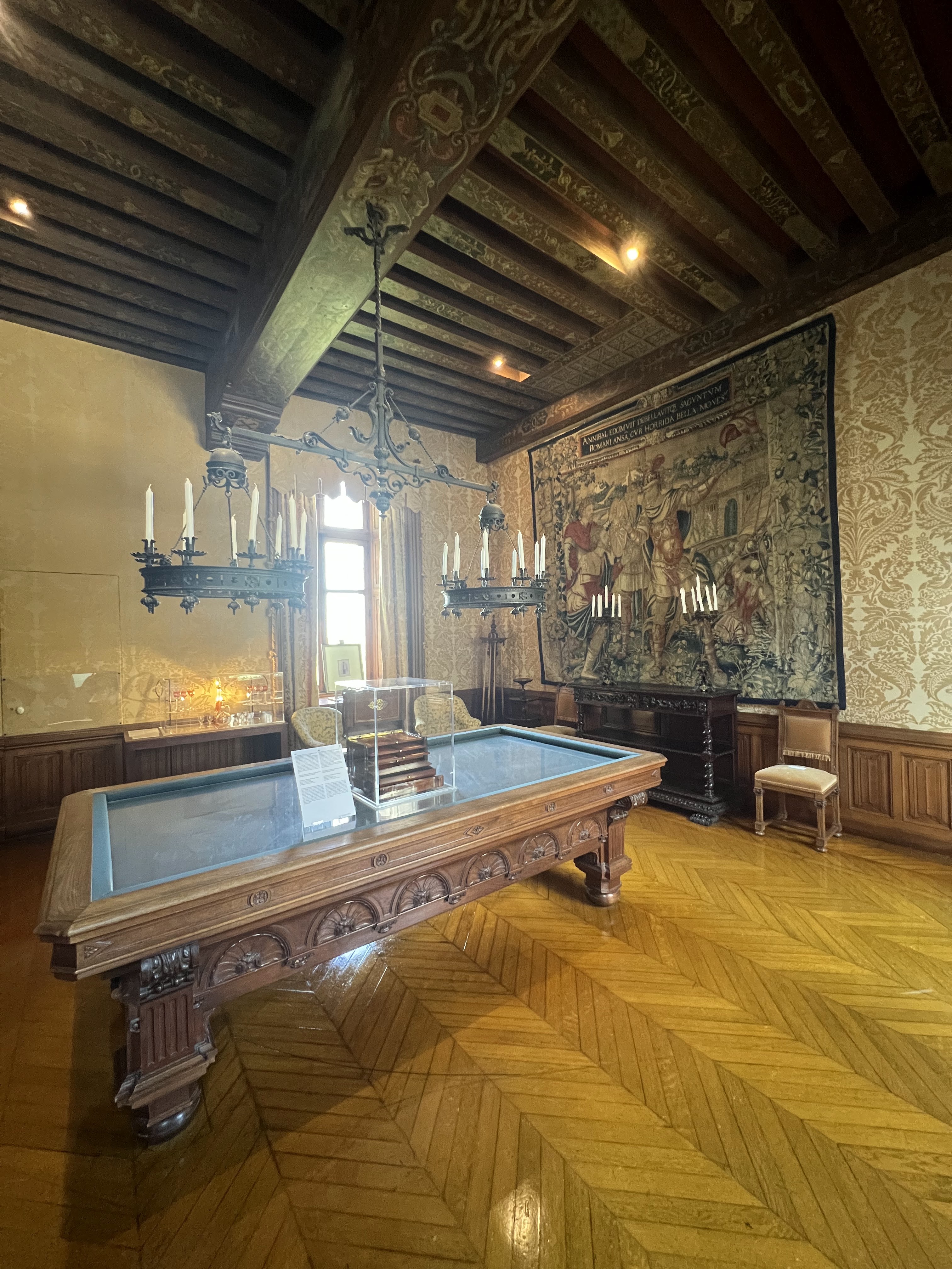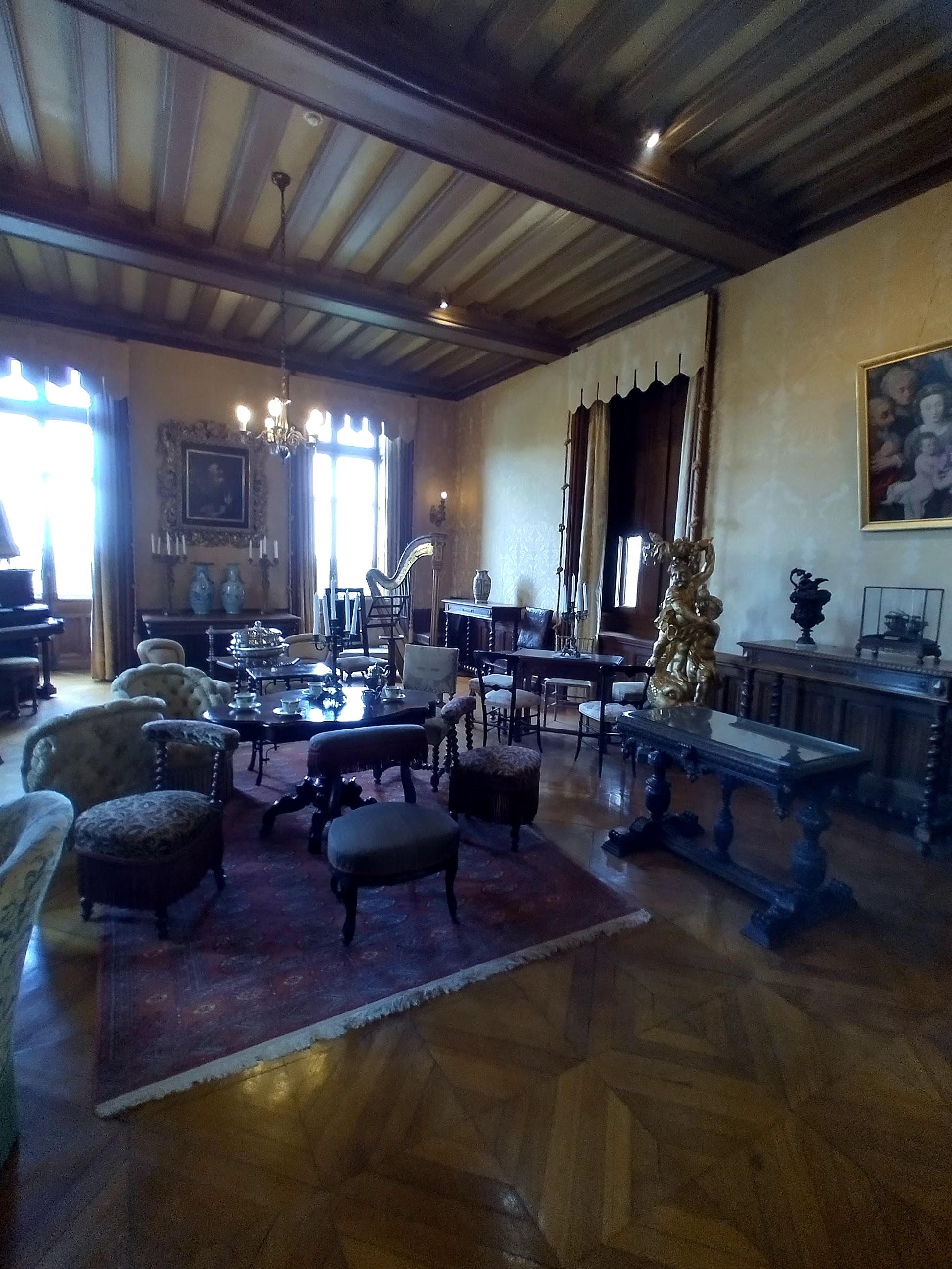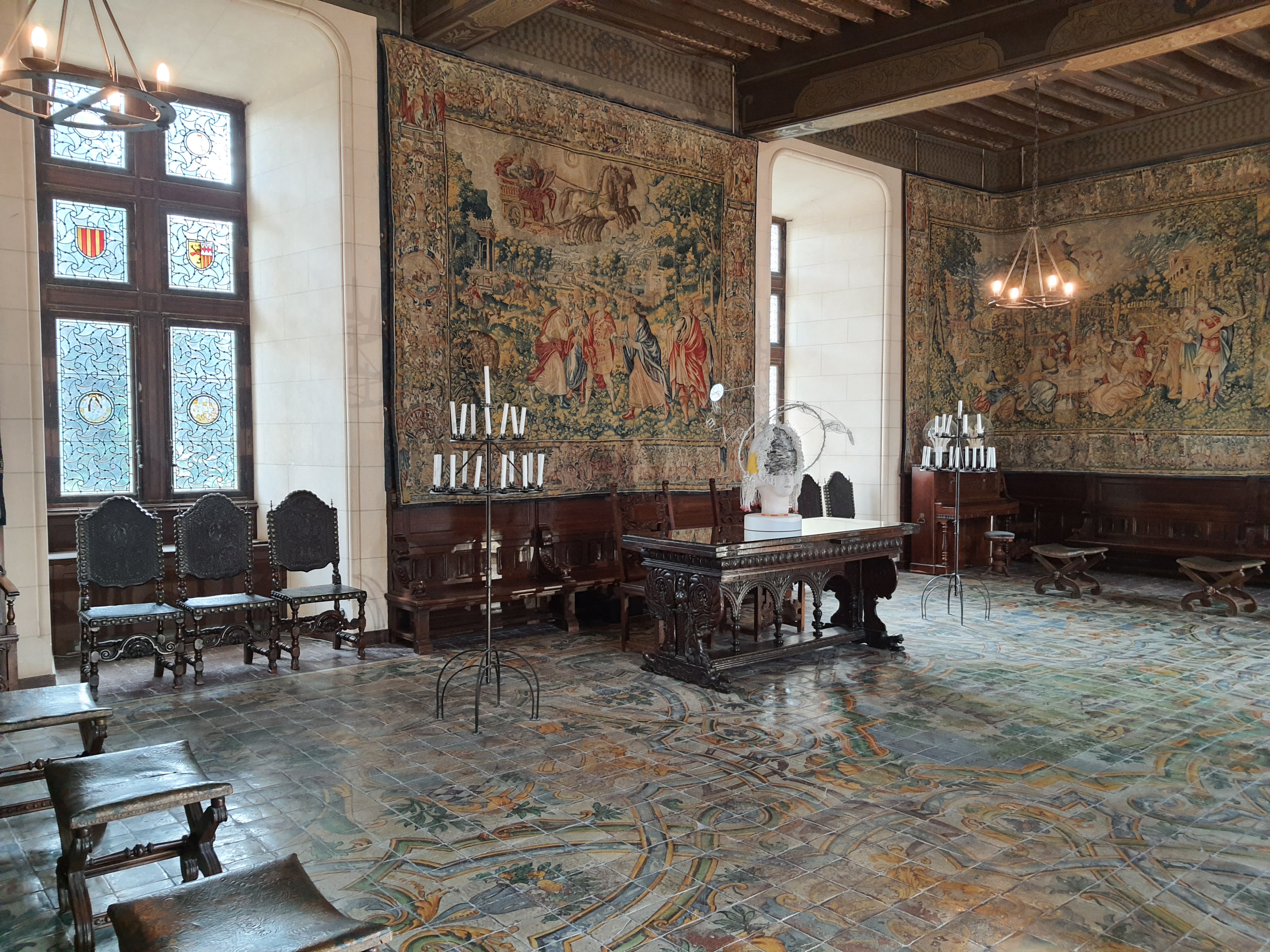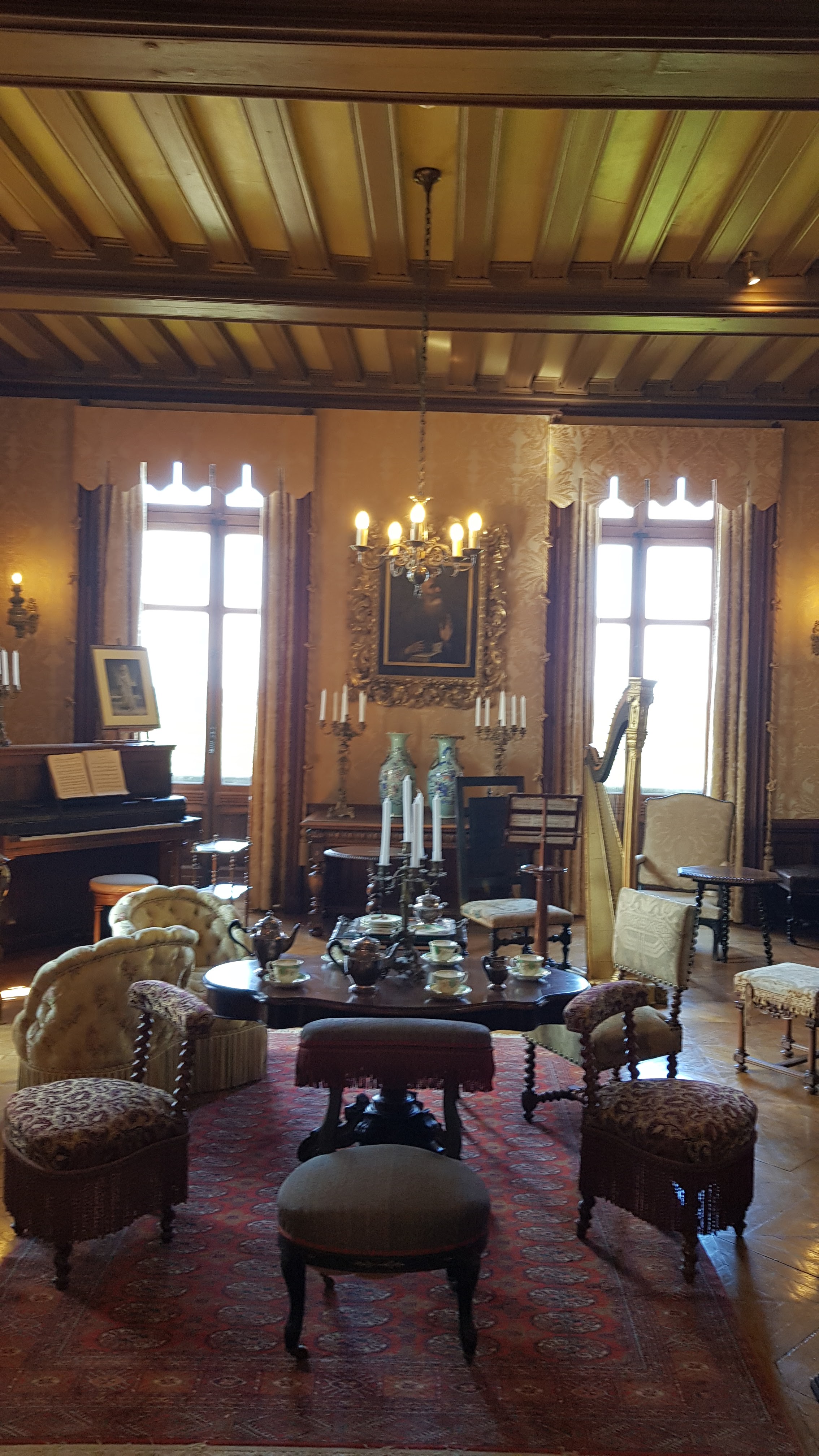 Le château et les lieux sont magnifiques par contre si vous cherchez un château pour en connaître son histoire, passez votre chemin il y a des œuvres d'art un peu partout qui se mélangent et prennent le pas sur le mobilier ou carrément la chapelle où l'on distingue les vitraux à travers l'oeuvre. Un étonnant mélange.