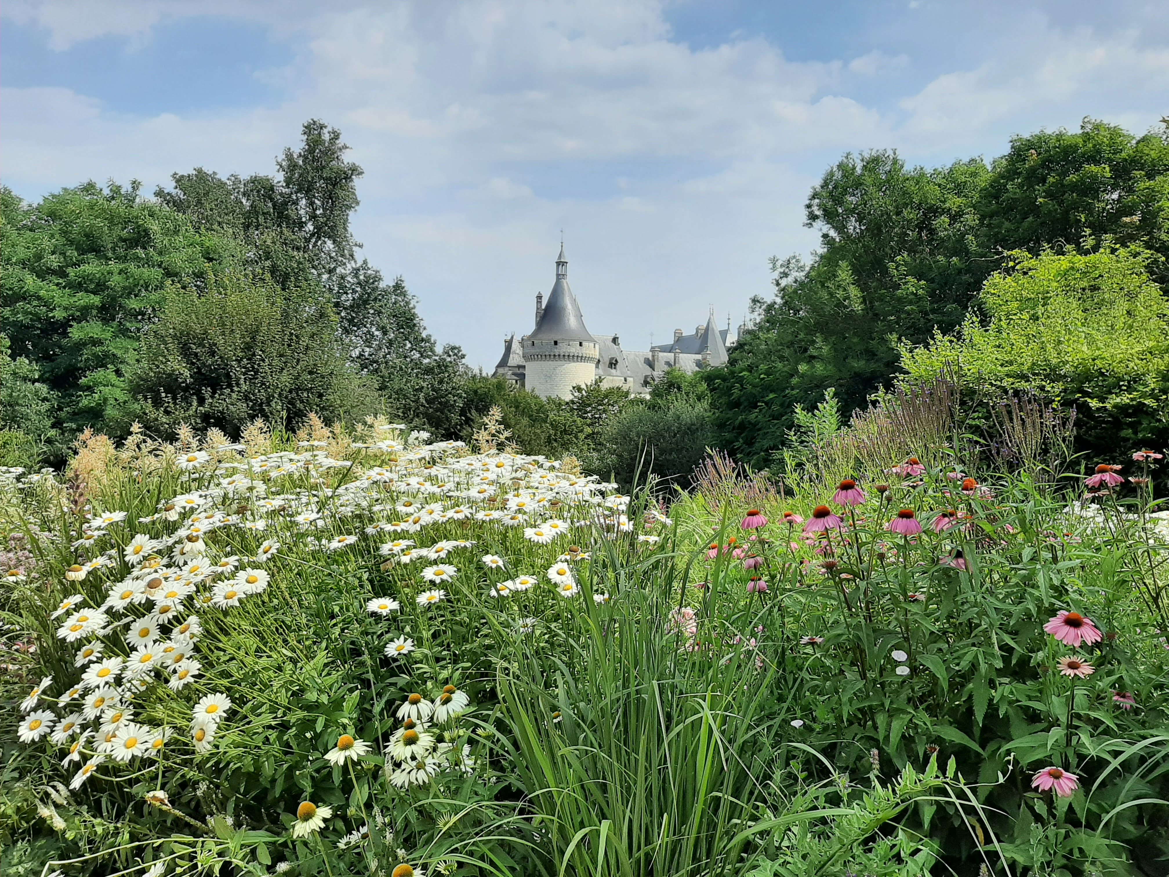 Joli parc , beaux jardins , le festival des jardins était agréable à parcourir avec plusieurs endroits pour s asseoir et passer un moment au calme. Le château est magnifique de l extérieur. l intérieur est propre et bien amenagé et meublé sur les 2 premiers étages, par contre les expo sur les derniers niveaux nous ont beaucoup moins convaincus. De plus ces étages sont dans un état bien tristes. Visite de 4h pour les jardins + le château en prenant son temps. agréable. Très jolie vue sur la Loire.