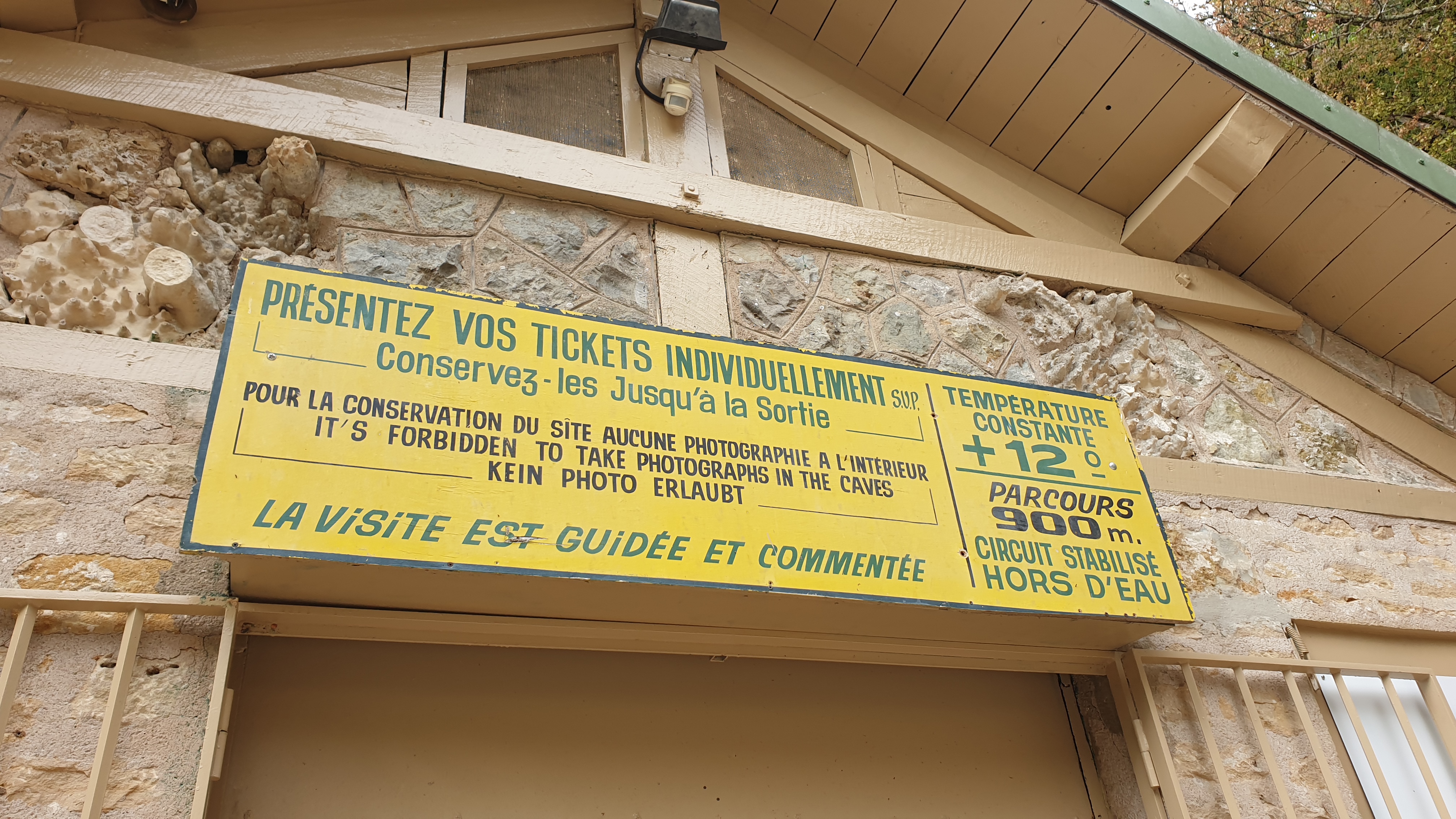 Les photos étant interdites, pas de cliché pour illustrer mes propos. Cinq étoiles pour le guide qui a su faire participer tout le monde, enfants et ados compris. Vaste parking, belle balade le long de la rivière, possibilité de boire un verre ou de manger une glace à la boutique. Attention ! Réservation conseillée. Ne convient pas aux personnes en fauteuil roulant. Prévoir une polaire ou pull si l'on est frileux, température constante à 12°.