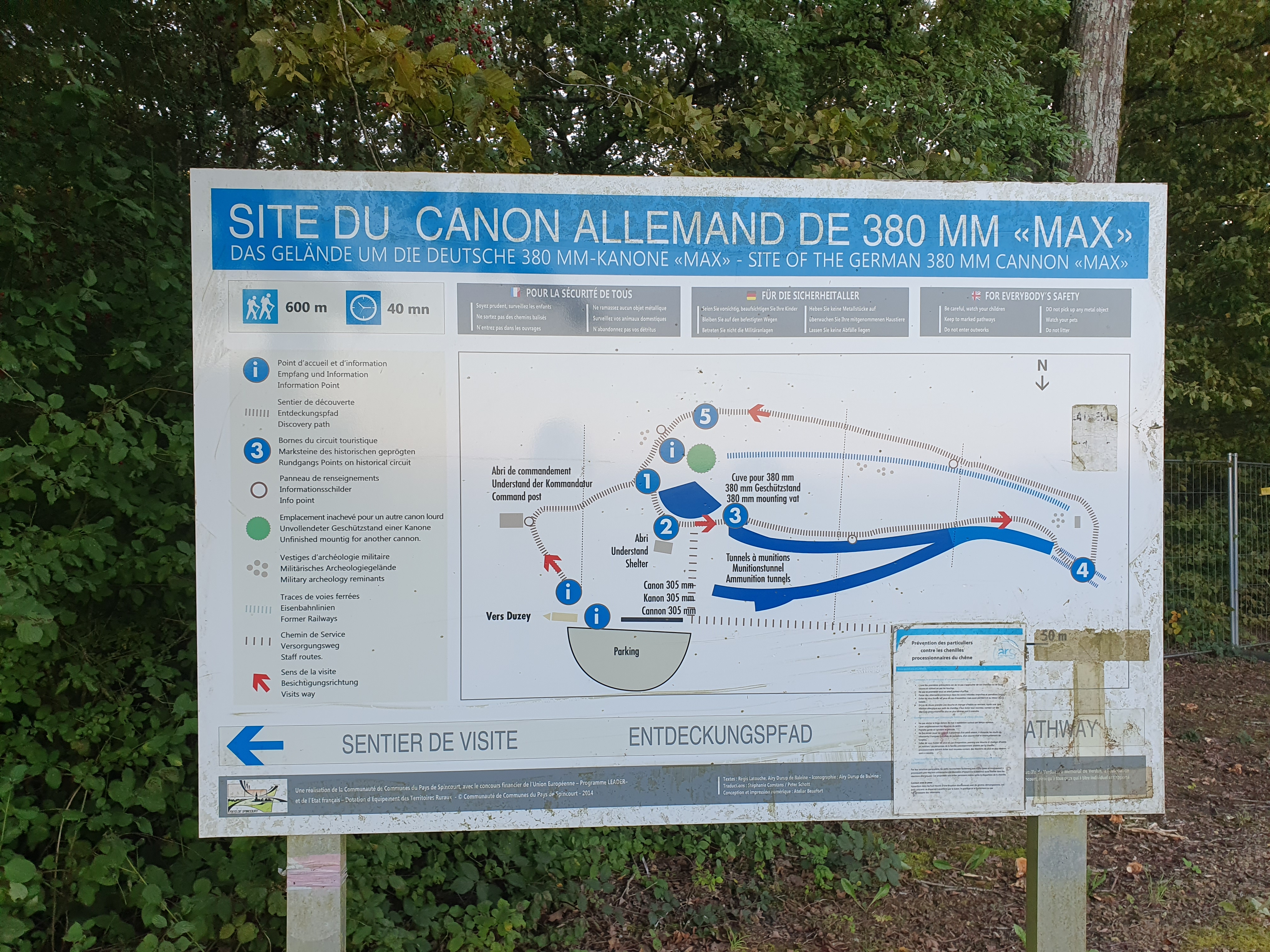 Visite fortement recommandée. Etant loin du Mémorial et des forts nous étions seuls lors de la visite et avons fait une balade à travers la forêt. Il faut être prudent avec la processionnaire du pin, il existe déjà des panneaux qui vous en avertissent.