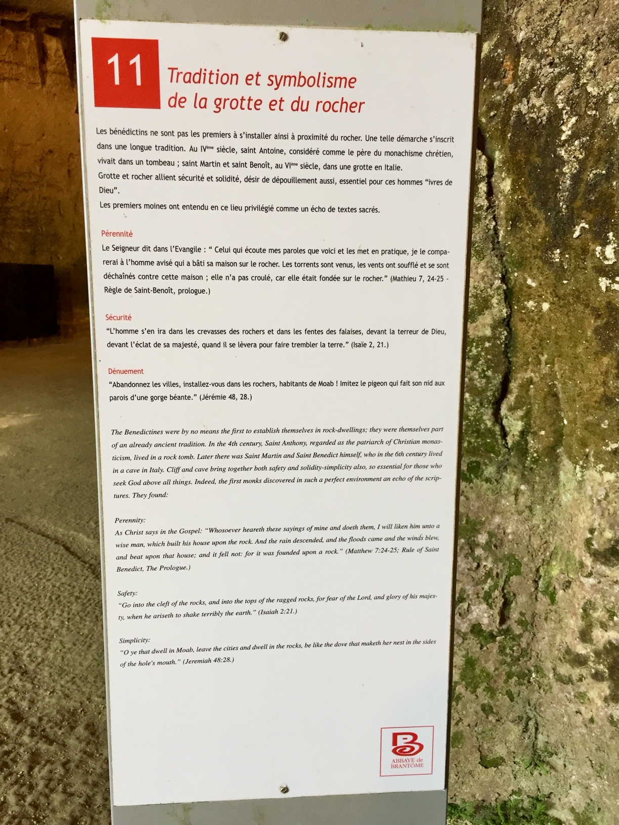 Un lieu original, l'histoire de cette abbaye troglodyte est passionnante Un lieu original, l'histoire de cette abbaye troglodyte est passionnante et fort bien présentée au travers d'une signalétique efficiente. Les bas-reliefs monumentaux impressionnent, la fontaine miraculeuse d'origine Gallo-romaine charme le visiteur, mais la grande source n'est pas mise en valeur. Le musée Fernand Desmoulin logé dans les bâtiments de l'abbaye fait partie de la visite. Ce peintre reconnu exerça pendant deux ans ses talents comme dessinateur médiumnique : serait-ce lié au fait que le début du 20ème siècle vit la consommation des opiacés se développer ??? en tout cas, je n’ai pas accroché sur cette partie de l’exposition.