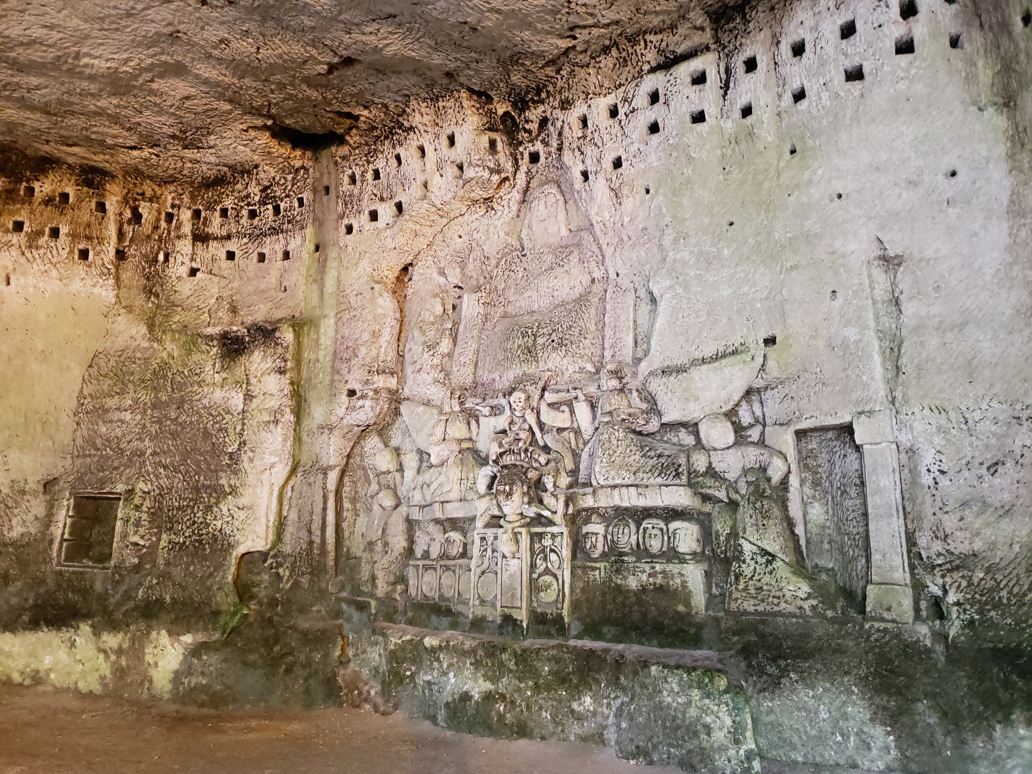 Il y a des grottes à l'arrière de l'abbaye, où vivaient les premiers descendants de la ville. Pour une somme modique, vous pouvez entrer et lire son histoire. 30 bonnes minutes passées à les explorer suffisent, mais rien d’extraordinaire. Ce ne sont en réalité que des trous creusés dans la falaise plutôt que n'importe quel type de réseau de « grottes ».