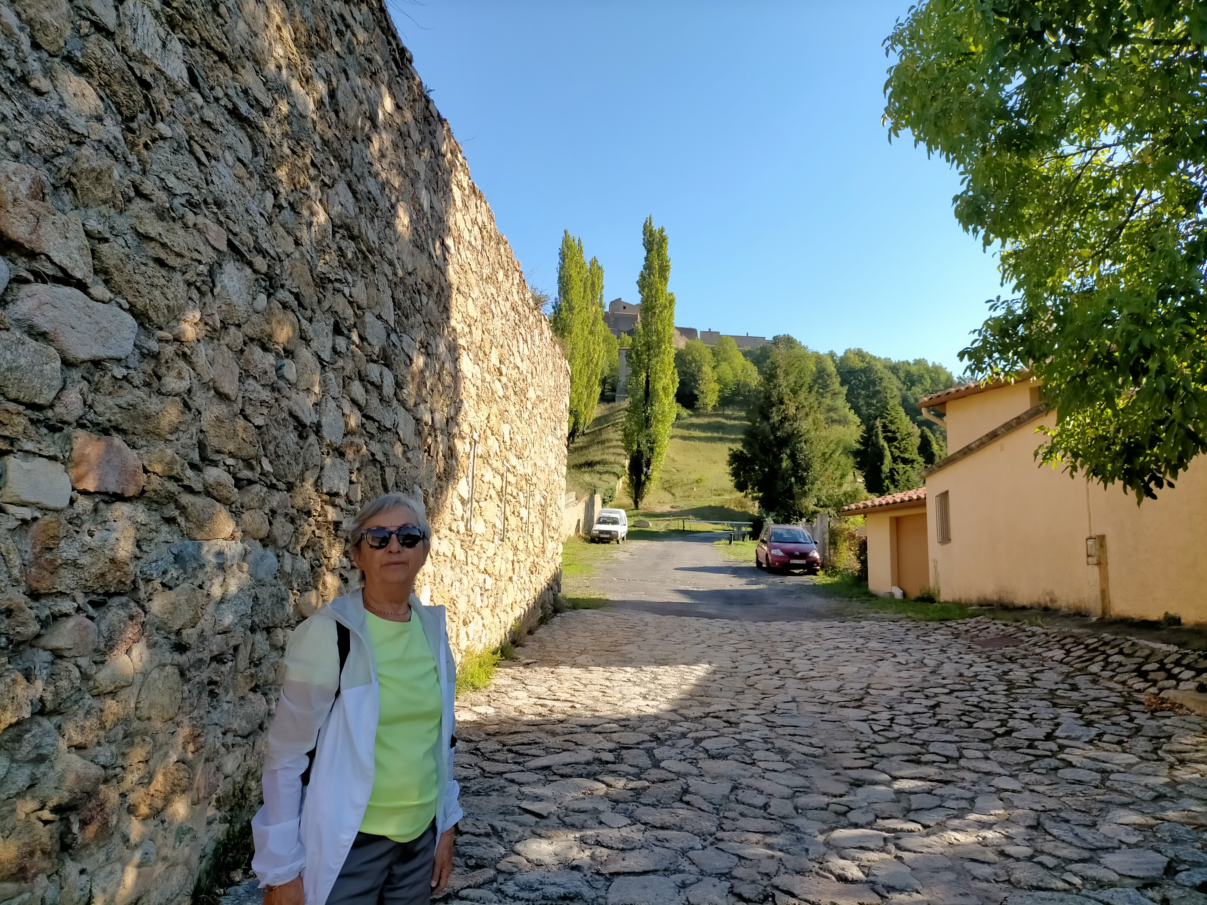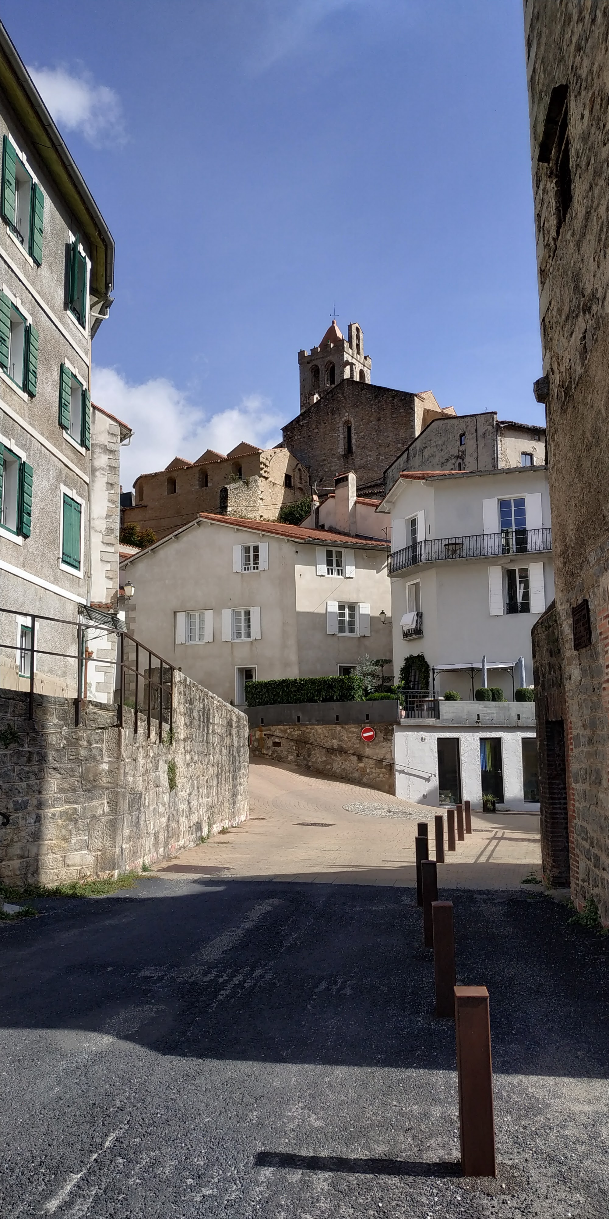 Une des pires routes que j'ai empruntées, pour arriver au bout du bout du Sud de la France, entre la pluie, les nids-de-poule, les virages et les éboulis, c'était interminable et dangereux. Mais où sont les services des ponts et chaussées dans ce lieu perdu? Tout ça pour arriver dans une ancienne ville fortifiée lugubre où tout était fermé. Plus jamais.