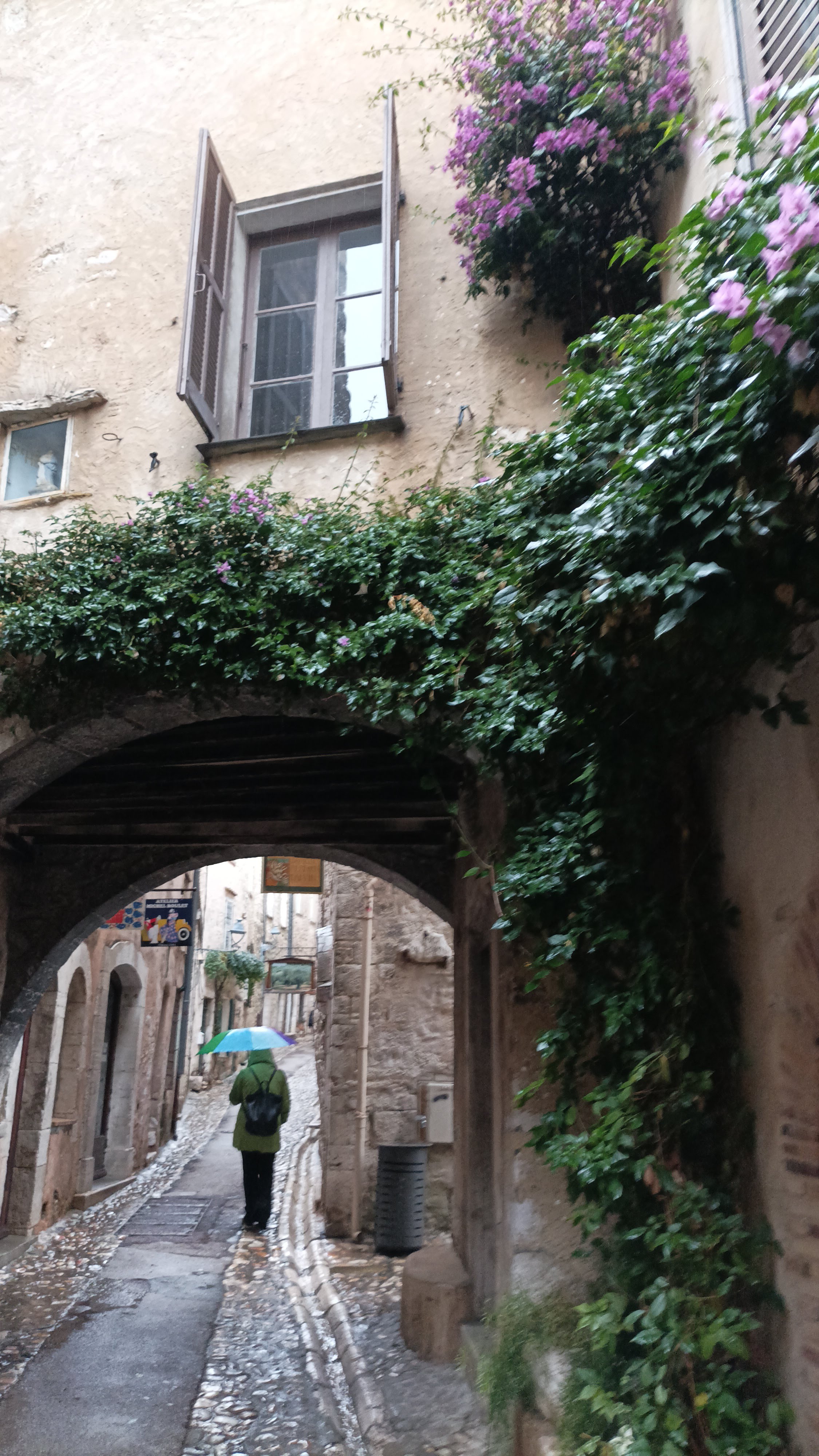 C'est une merveilleuse ville médiévale, à environ 40 minutes de Nice et de Cannes en voiture. Si vous venez dans cette région, je vous recommande vivement de la visiter. Les galeries d'art ajoutent une ambiance encore plus belle à la ville. Il y a un 10- parking couvert à étage pour ceux qui viennent en voiture. Mais toujours en haute saison Trouver une place peut être difficile. Promenez-vous dans les maisons historiques et les petites rues étroites et belles et profitez-en.