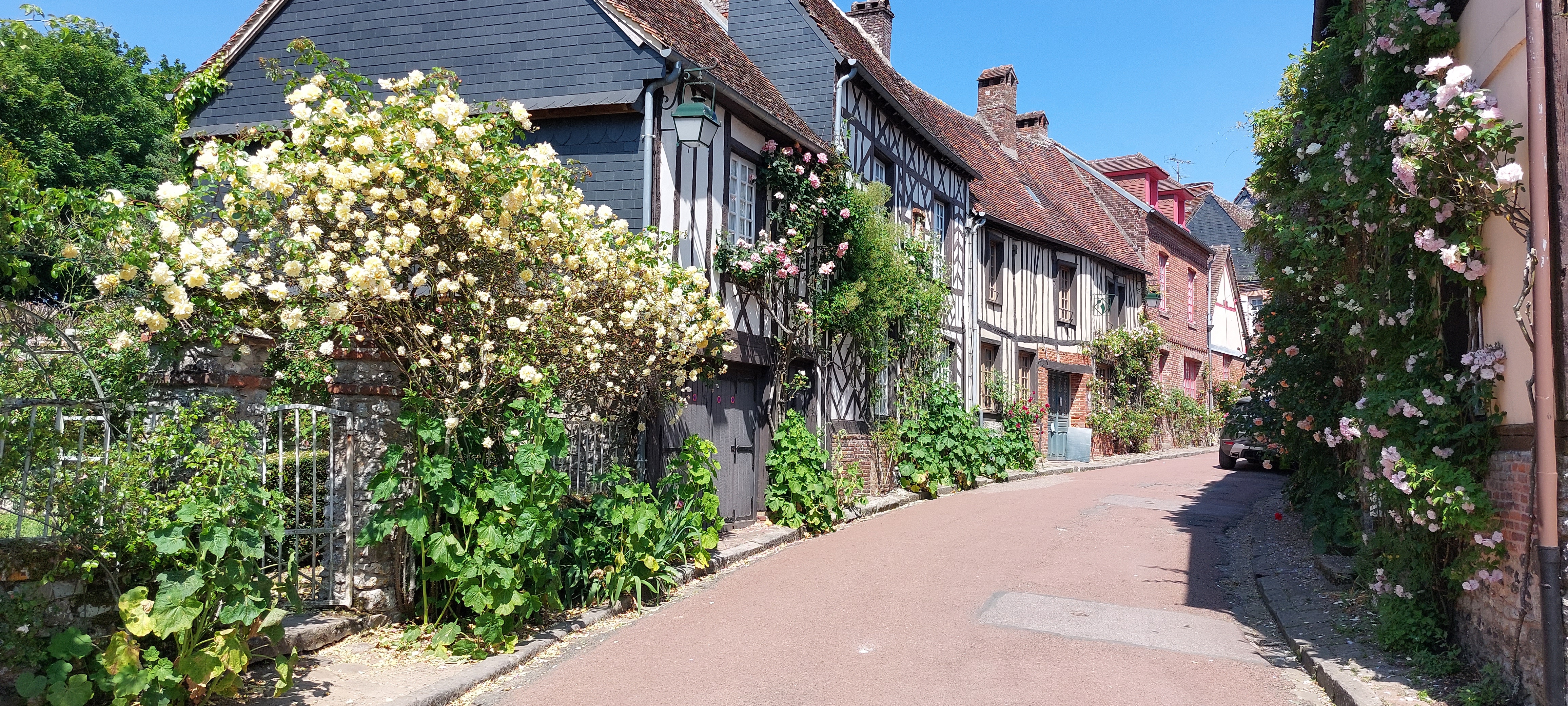 Très beau village fleuri. Très bien entretenu. Il y a un très grand parking gratuit à l'entrée du village avec deux grand conteneur pour les déchets des visiteurs. nous avons passé deux heures de promenade sans être embêté par les voitures. Les rosiers commençaient à fleurir, ce qui permettait d'avoir un agréable parfum dans les rues.
